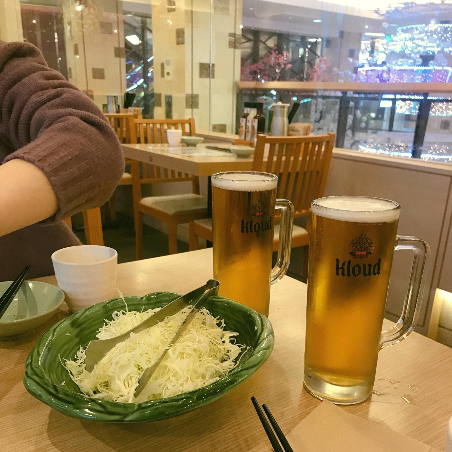 연수 기념 파스텔 시티에서 돈까스와 맥주 한잔