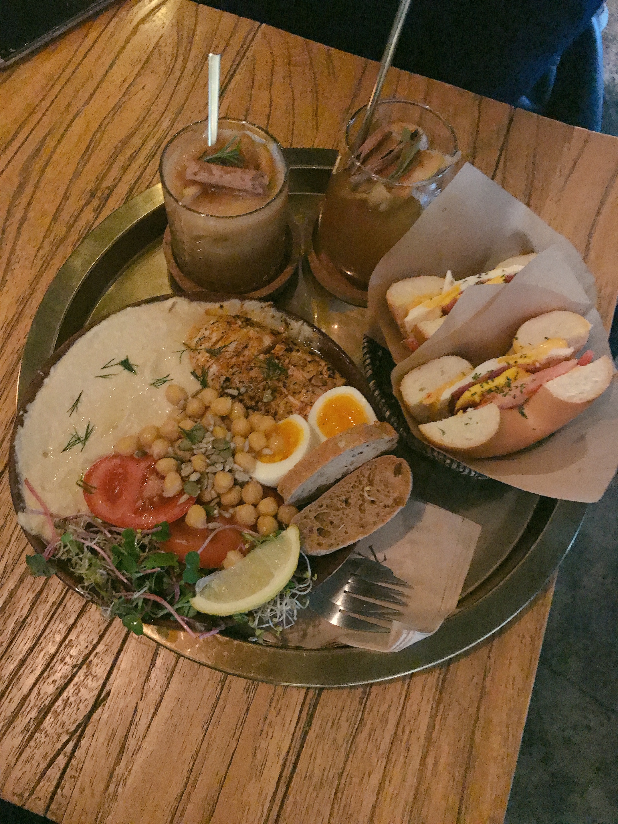 베이글 샌드위치, 치킨 브런치 메뉴와 사과 쥬스 다 너무 맛있었다.