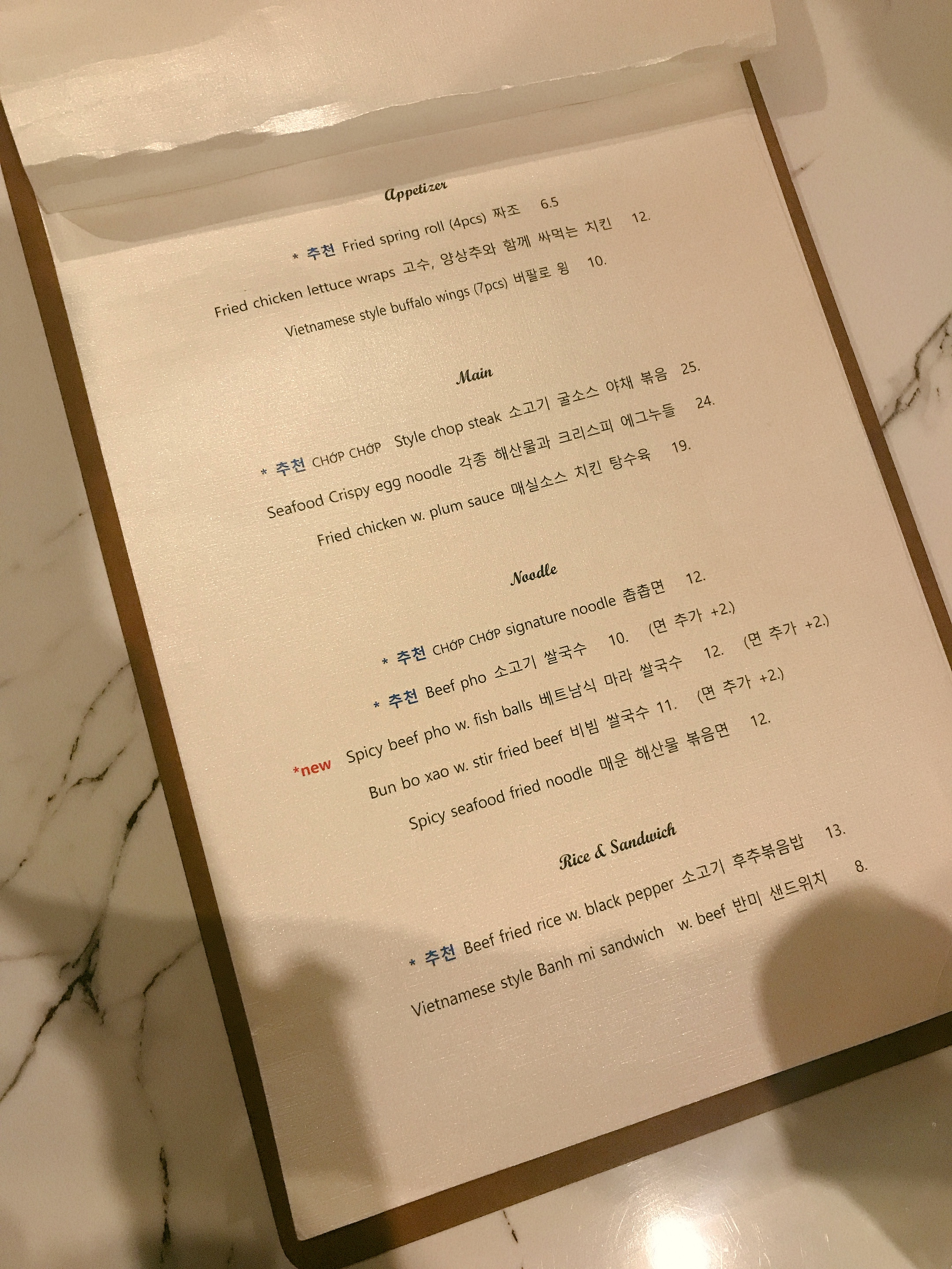 한옥의 서까래와 배트남 음식과 와인의 조화가 잘 어울어졌던 공간이었다.