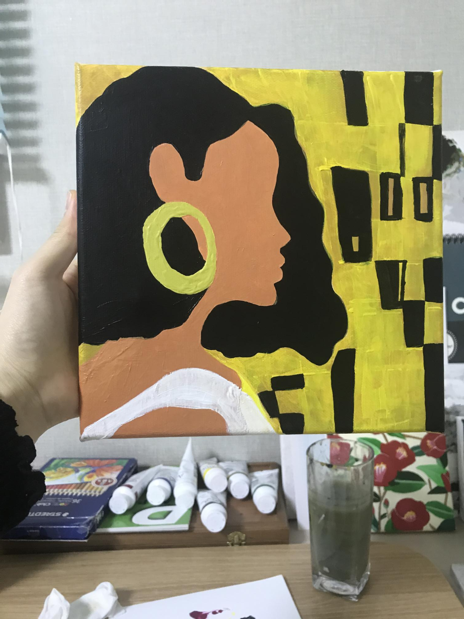핀터레스트에서 본 이미지에 클림트 키스에서 따온 패턴을 배경으로 색칠해보았다.