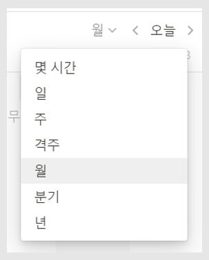 타임라인에서 시간 간격을 월, 분기, 년, 주 등등의 단위로 설정할 수 있습니다.