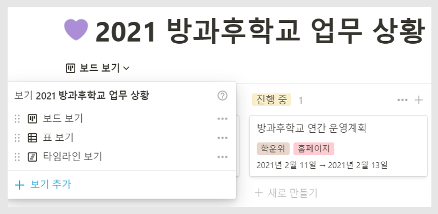 | 노션으로 학교 업무하기_5 : : 대시보드 만들기 (1) | 2021.05.16 |