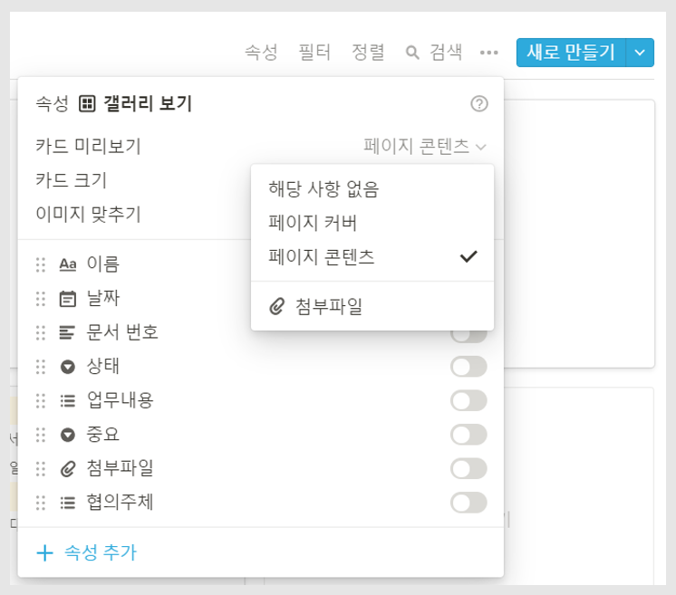 속성을 클릭해서 카드에 보여질 내용을 바꿔보겠습니다.