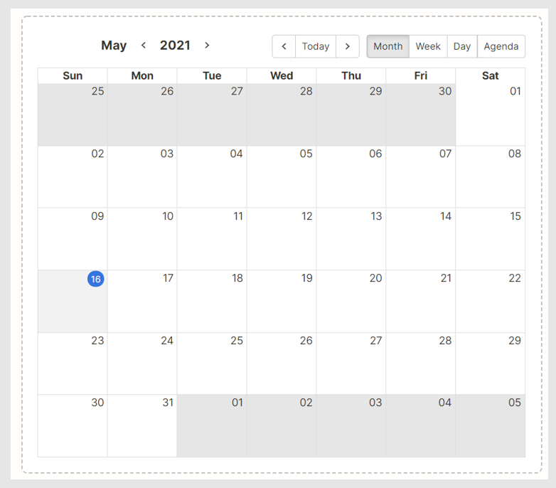 Hide view selector : 오른쪽 상단의 Month, week, day, agenda 메뉴가 없어집니다. 좀 더 깔끔하게 볼 수 있습니다.