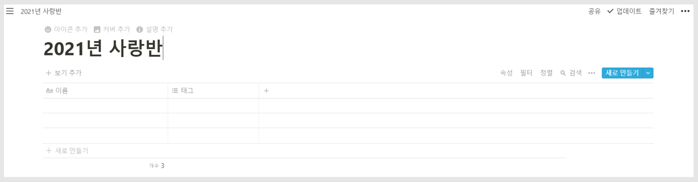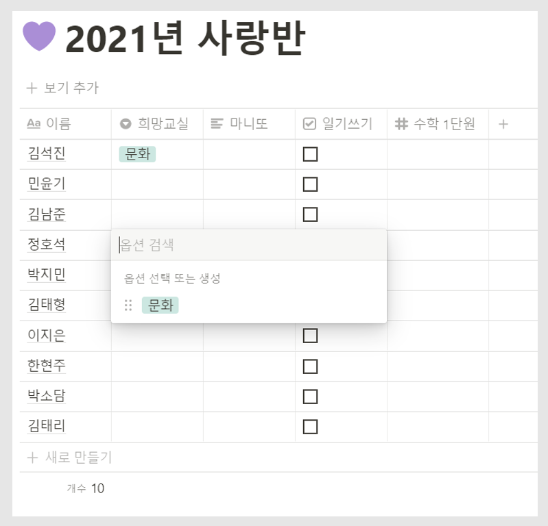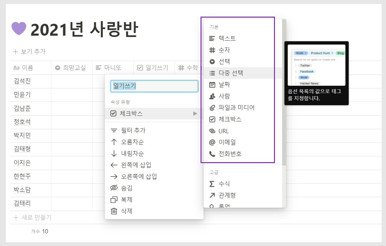 2021.03.30 - [NOTION] - 노션으로 학교 업무하기_2 : : 속성 만들기