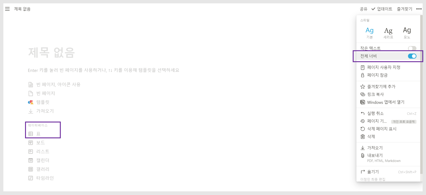 2. 오른쪽 상단의 점 세 개를 눌러 전체 너비로 만들어줍니다(선택사항)