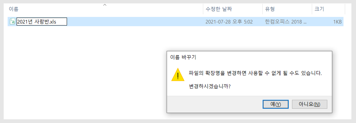 이름 바꾸기를 해서 이름을 깔끔하게 바꾸고 확장자를 .xls 로 바꾸어주세요