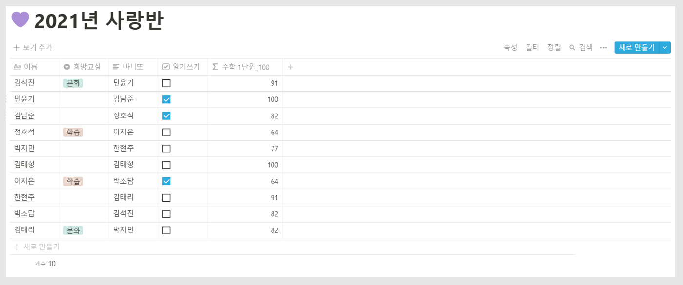 노션으로 학급관리를 할 때 가장 큰 장점은