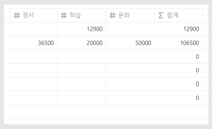 위와 같이 세 개의 칸과 합계가 나왔습니다.