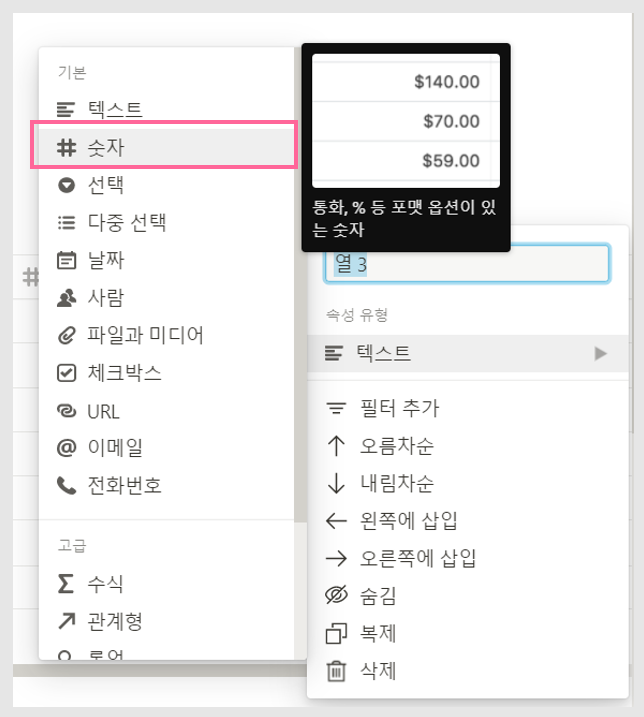 앞의 그림을 잘 보면 텍스트, 날짜, 숫자(#)로 구별을 해주었습니다.