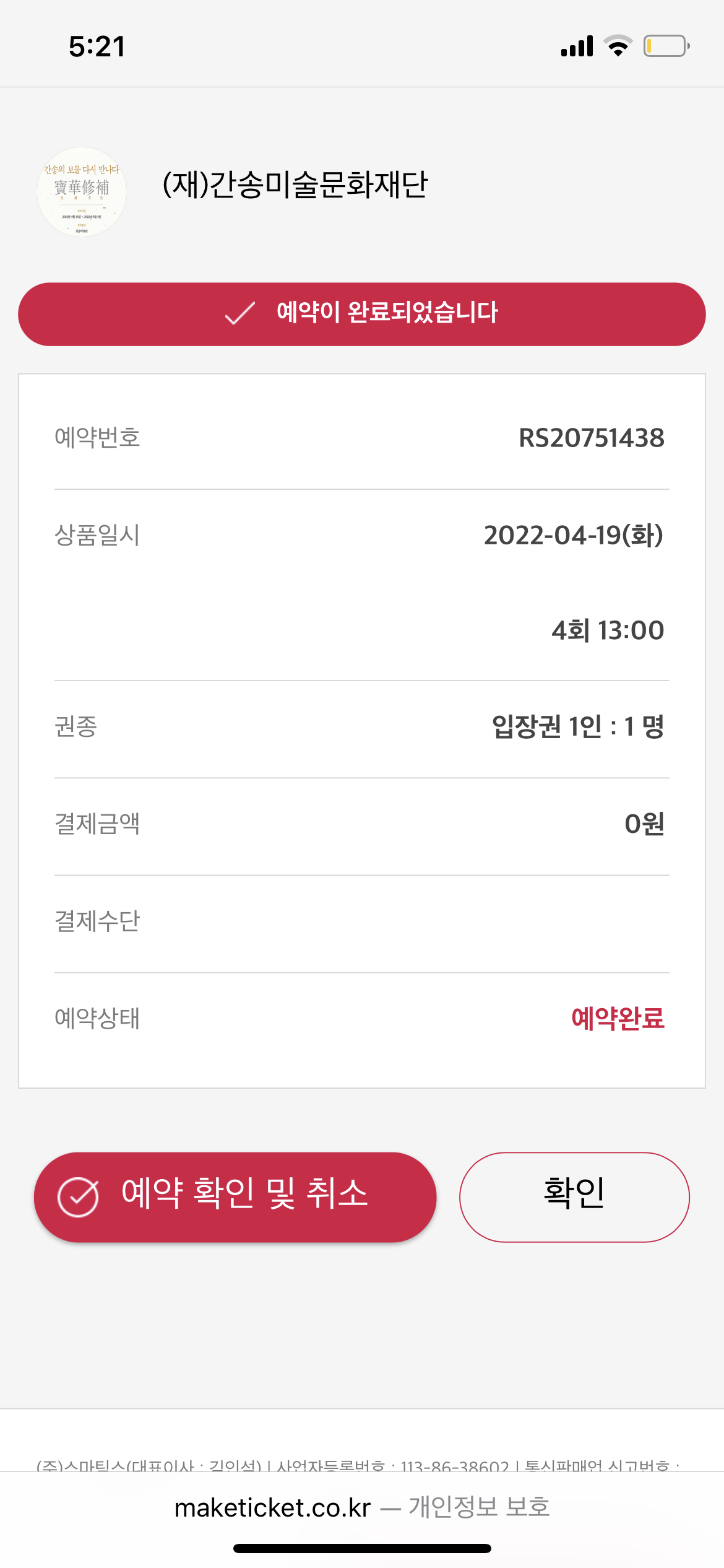 예약 사이트 : https://www.maketicket.co.kr/ticket/GD20469
