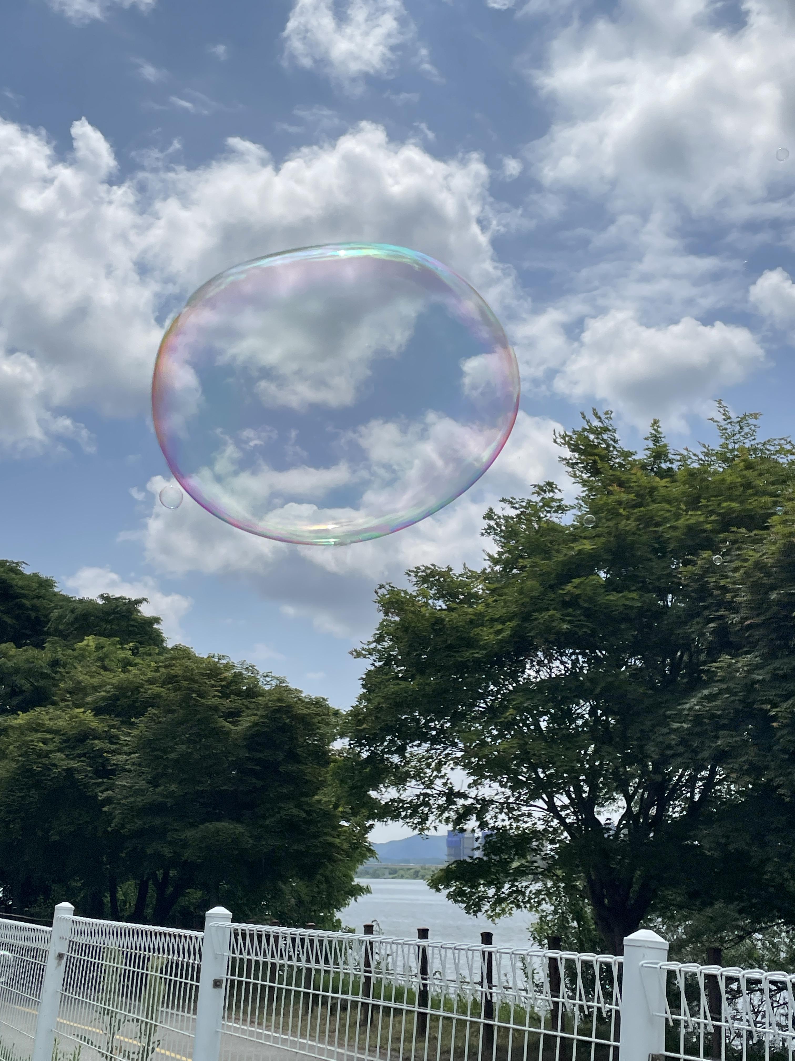 두둥실 비눗방울. 매직버블 체험이라길래 대단한건줄 알았는데 비눗방울 놀이였다. 요즘 필요이상의 영어 표현이 넘쳐나는 것 같다. 어싱(earthing) 이라는 말도 첨에 듣고 어찌나 웃었던지. 걍 맨발걷기라고 하면 안되나 ㅋㅋㅋ