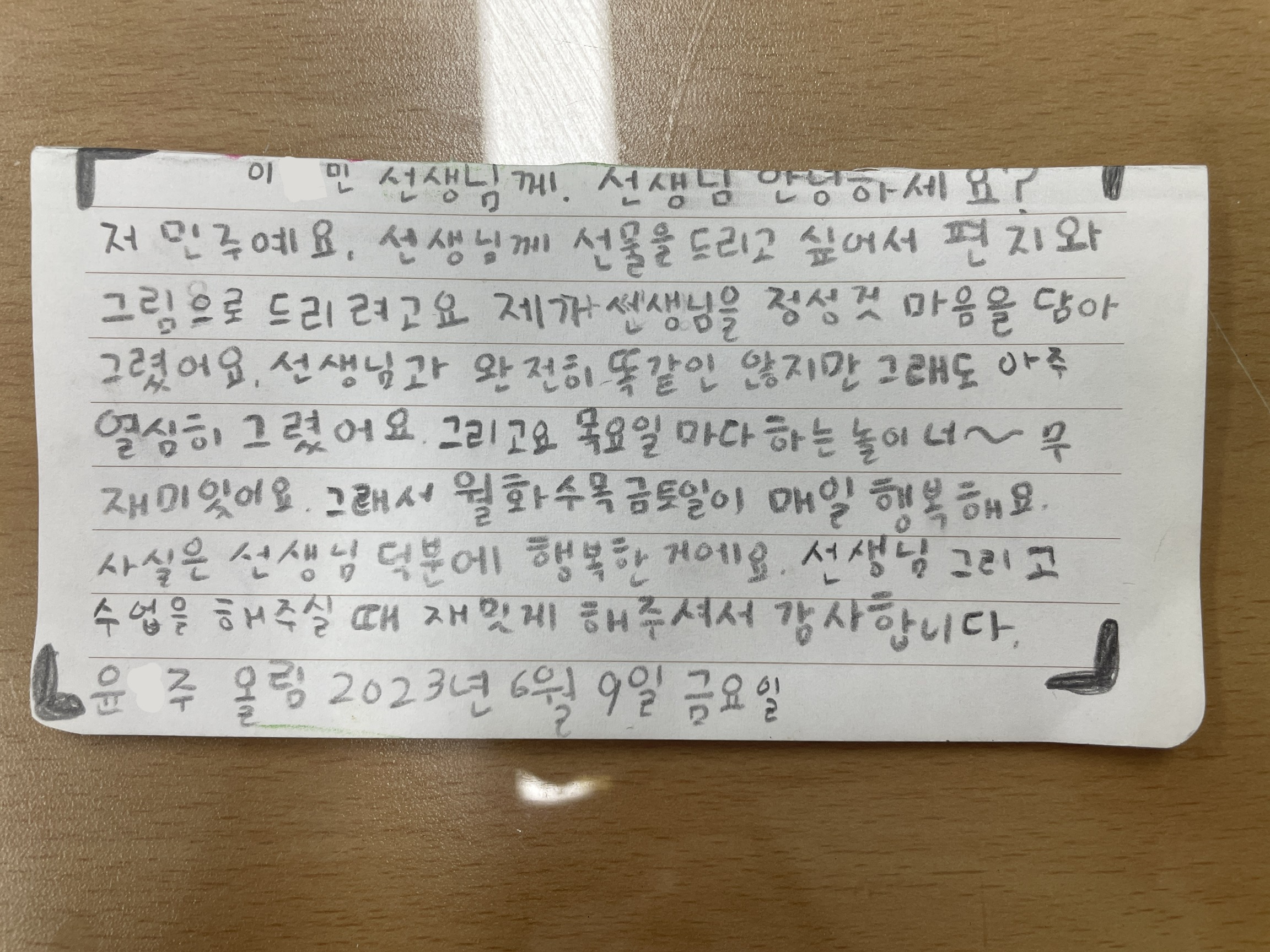 저학년 담임의 묘미. 점심먹고 교실에 오면 이런 이쁜 선물이 책상위에 올라와있다.