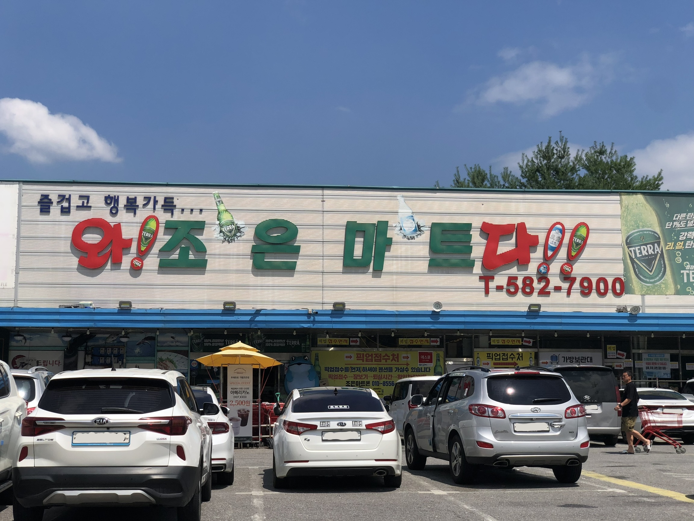 두번째 가평 여행. 가평역에서 내려 택시를 타고 “와! 조은마트 다!“에 가서 장을 본다. 택시 영수증은 꼭 챙길 것~! 장 본 비용에서 3천원을 할인해준다. 조은마트에서 1인당 2만원 이상 장을 보면 숙소까지 무료 픽업을 해준다. 숙소까지 갈 때 한번, 다음날 가평역까지 한 번, 총 두 번 픽업을 해주신다. 가평의 물류와 운송을 담당하는 가평의 중심지 조은마트ㅎㅎ 이것저것 담다보면 1인당 2만원은 훌쩍 넘는다. 단, 쌈장이나 소금같은것은 집에서 챙겨가면 좋을 것 같다.